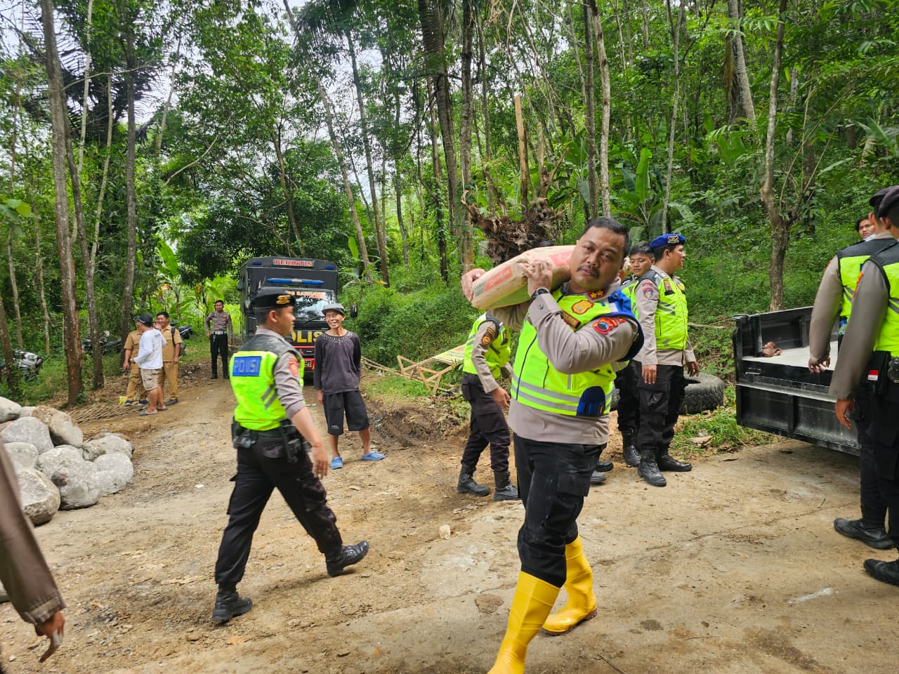 Kegiatan ini menjadi bukti nyata kepedulian Polri terhadap infrastruktur masyarakat dan upaya mempercepat selesainya akses vital yang menghubungkan dua desa penting di Bantarkawung.