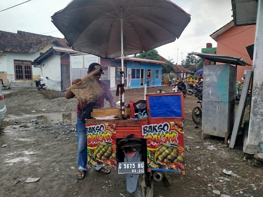 BREBES, BentangNews – Menjelang pembukaan program TNI Manunggal Membangun Desa (TMMD) Reguler ke-127 Kodim 0713/Brebes, geliat ekonomi mulai dirasakan oleh para pedagang kecil. Salah satunya adalah Mashudi (35), pedagang bakso bakar asal Desa Kubangjati, Kecamatan Ketanggungan, yang rela “jemput bola” mengadu nasib di lokasi sasaran TMMD, Desa Cikuya, Sabtu (7/2/2026).