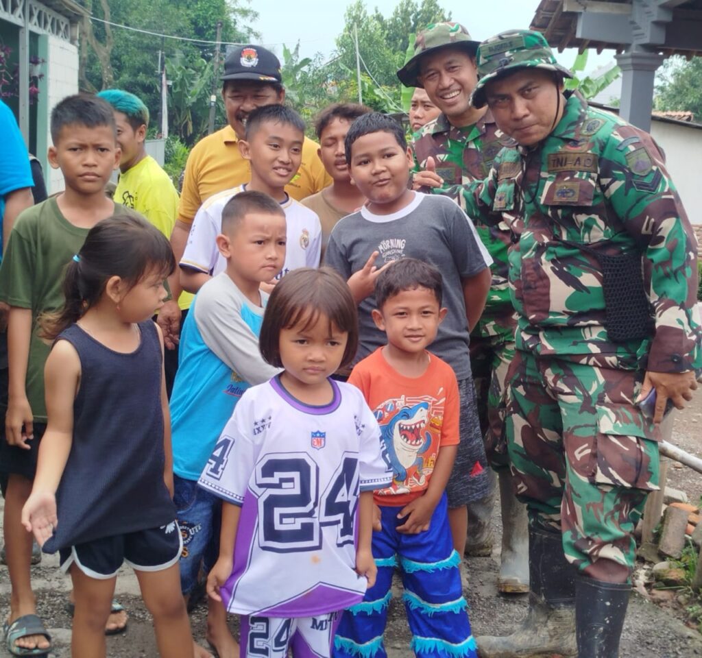 Kejadian ini berlangsung di lokasi bedah rumah milik Ibu Rahmawati, salah satu warga penerima manfaat program RTLH TMMD. Saat Sertu Solekudin sedang beristirahat sejenak dari aktivitas pertukangan, anak-anak Desa Cikuya langsung menghampiri dan mengerumuninya dengan penuh keceriaan.