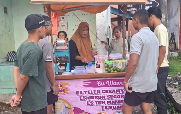 Pada Sabtu (21/02/2026) sore, suasana di lapak minuman segar milik Ibu Wawan tampak berbeda dari tahun-tahun sebelumnya. Menjelang waktu berbuka puasa, puluhan personel Satgas TMMD terlihat mengantre untuk membeli aneka minuman segar guna melepas dahaga setelah seharian bekerja di lapangan.