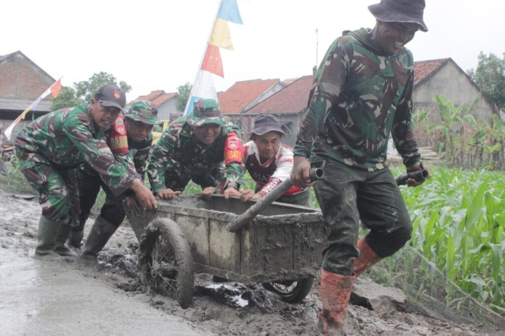 Di lokasi pengecoran, Dandim tampak ikut meratakan adonan beton bersama anggota TNI dan warga. Kehadirannya di tengah pekerjaan menjadi penyemangat tersendiri bagi Satgas dan masyarakat yang bergotong royong menyelesaikan pembangunan.