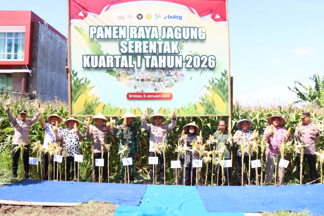 BREBES, BentangNews – Dalam rangka memperkuat ketahanan pangan nasional, Kepolisian Resor (Polres) Brebes menggelar kegiatan Panen Raya Jagung Serentak Kuartal I Tahun 2026. Kegiatan ini dipusatkan di lahan pertanian milik warga di Desa Janegara, Kecamatan Jatibarang, Kabupaten Brebes, pada Kamis (8/1/2026).