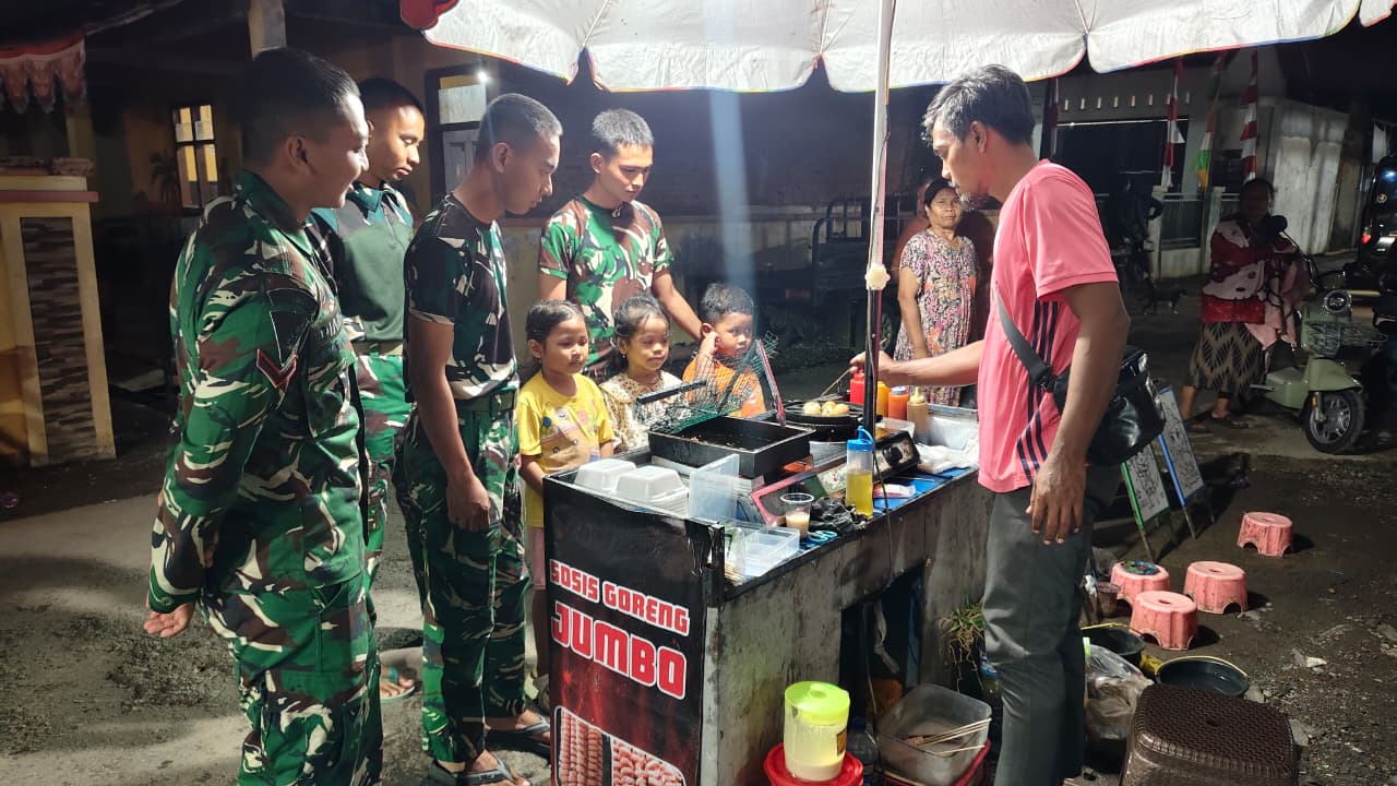“Malam Senin begini biasanya kami manfaatkan untuk interaksi santai dengan warga. Sambil memburu jajanan tradisional, kami bisa ngobrol lebih akrab tanpa sekat formalitas,” ujar salah satu anggota Satgas saat sedang mengantre jajanan.
