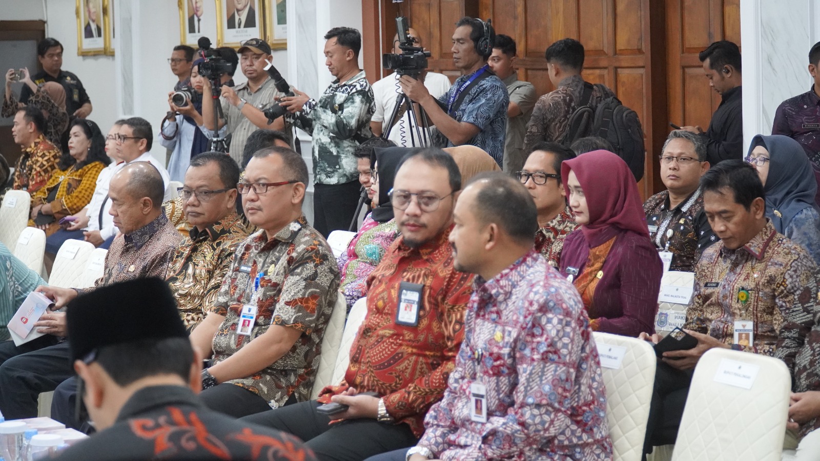 Hadir Wali Kota Tegal Dedy Yon Supriyono bersama Wakil Wali Kota Tegal Tazkiyyatul Muthmainnah didampingi Kepala Badan Perencanaan Pembangunan, Riset dan Inovasi Daerah (Bapperida) Kota Tegal, M. Ismail Fahmi.