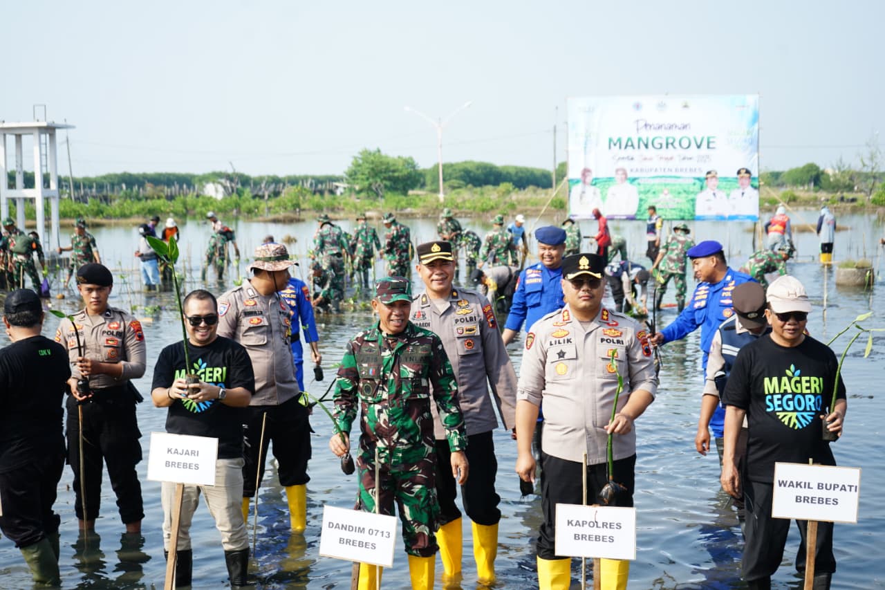 “Polres Brebes mendukung penuh gerakan Mageri Segoro. Kami tidak hanya ikut menanam, tetapi juga akan melakukan patroli rutin dan pemantauan pertumbuhan pohon mangrove bersama Sat Polairud dan Polsek jajaran,” ucap Kapolres.