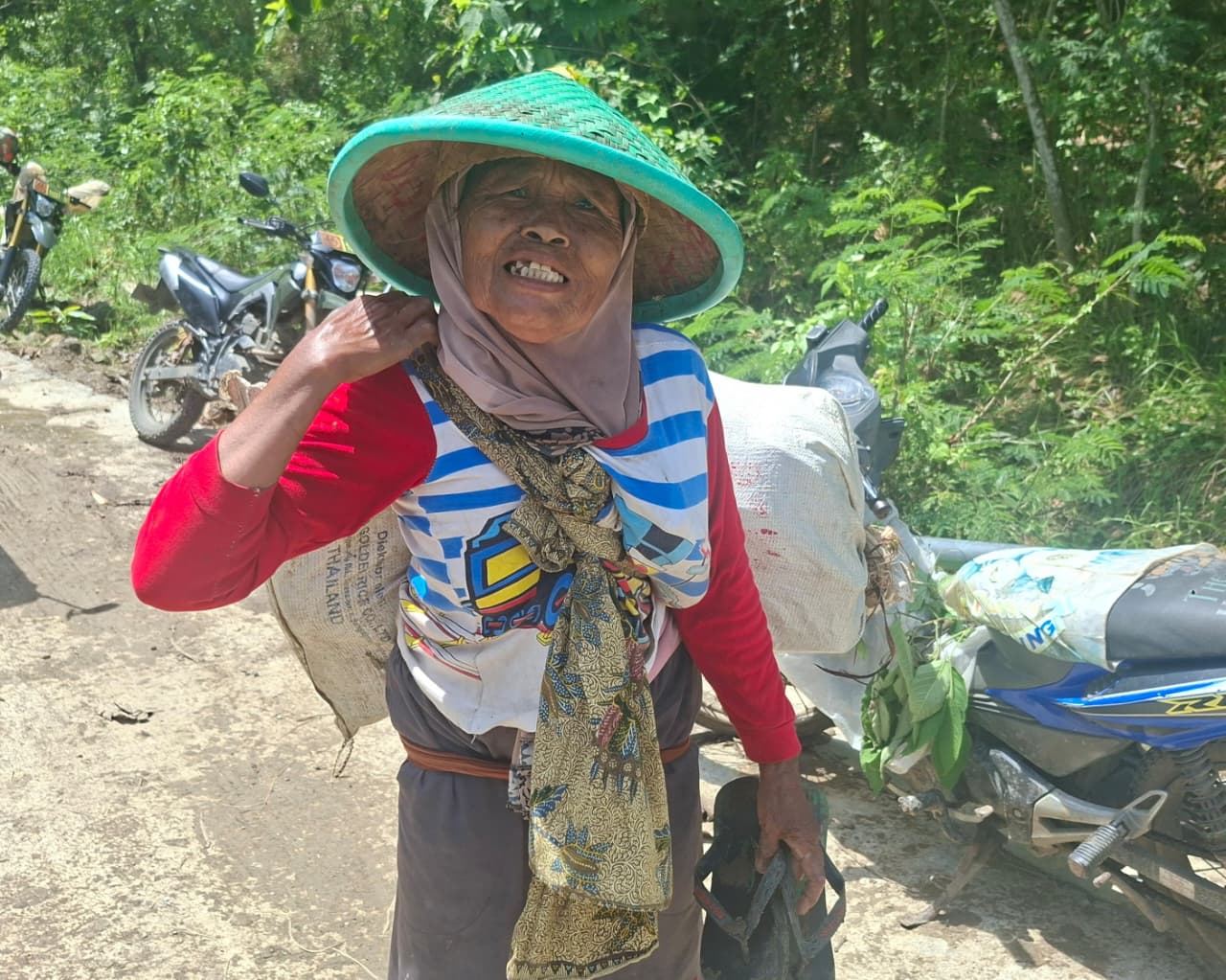 Bagi Ibu Turah, akses jalan yang rusak parah bukan sekadar menghambat perjalanan, melainkan ancaman keselamatan fisik. Kondisi jalan yang berlumpur dan licin seringkali membuatnya harus berjuang ekstra agar tidak terjatuh saat memikul hasil tani atau sarana produksi pertanian.