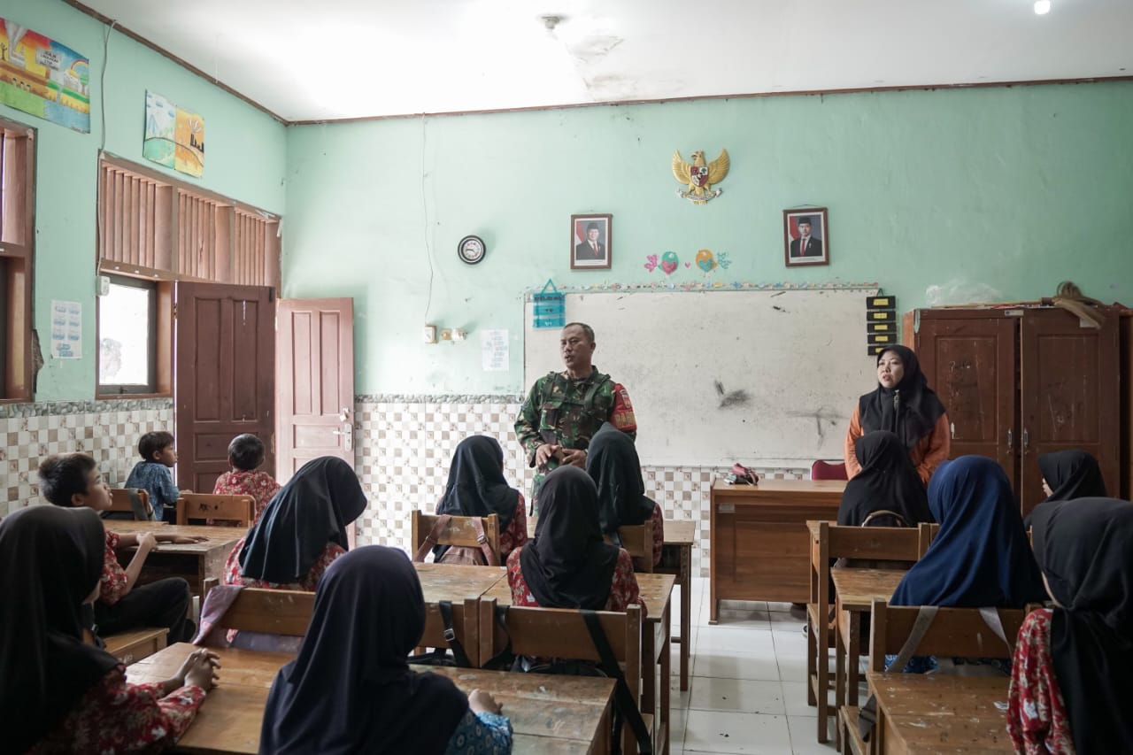 ​Kehadiran prajurit TNI di dalam kelas ini menjadi pemandangan yang memotivasi para siswa. Dengan didampingi Guru Kelas 6, Ibu Waenah, S.Pd., Serka Sagiman memberikan materi wawasan kebangsaan serta dorongan moril agar anak-anak desa tidak patah semangat dalam mengejar cita-cita.
