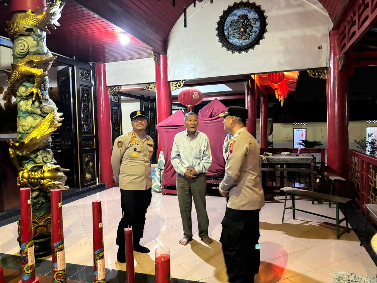 “Kami dari Polres Brebes melaksanakan pengamanan dan pemantauan intensif di Klenteng Hok Tek Bio. Harapan kami, kegiatan doa bersama ini berlangsung aman dan lancar tanpa kendala apa pun,” kata AKBP Lilik.