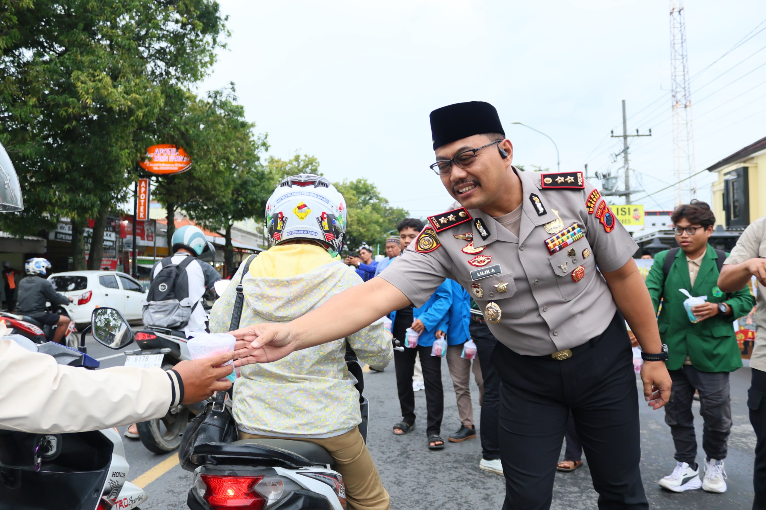 Rangkaian kegiatan dimulai dengan pembagian takjil kepada masyarakat sekitar dan pengguna jalan didepan Mapolres Brebes sebagai bentuk kepedulian sosial bersama antara polisi dan mahasiswa.