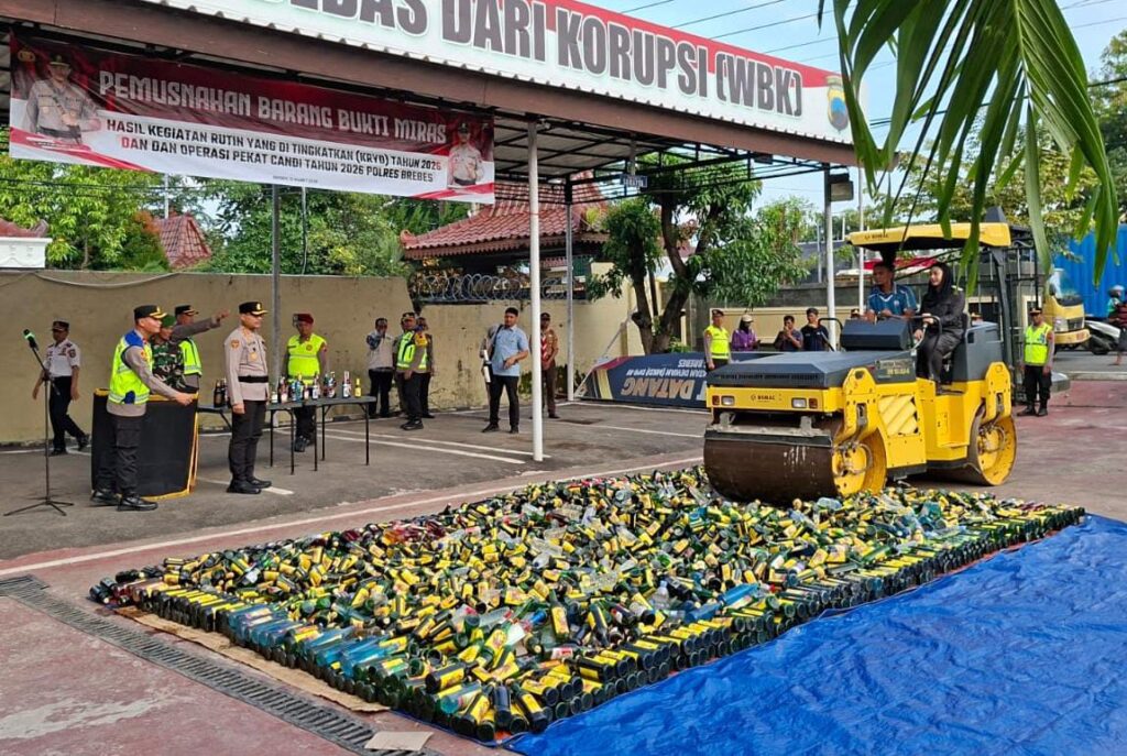 โSebanyak 3.072 botol miras pabrikan dan Miras Tradisional serta759 botol tuak (brangkal) kita musnahkan dalam kegiatan ini,โ terang Kapolres Brebes usai kegiatan Apel Gelar Pasukan Operasi Ketupat Candi (OKC) 2026.