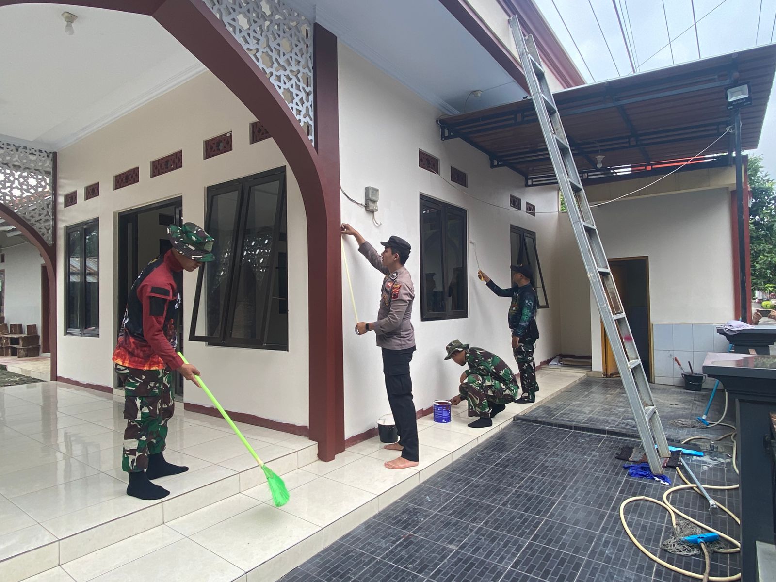Pengecatan mushola dilakukan secara gotong royong untuk menciptakan lingkungan ibadah yang bersih dan nyaman bagi warga.
