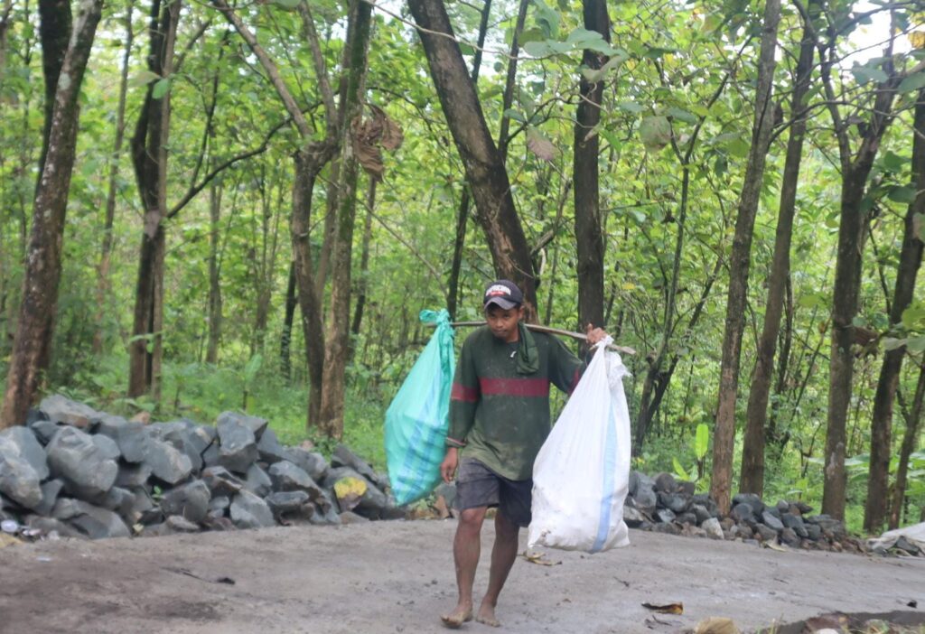 “Oh iya Pak, dipikul cuma sampai depan situ saja. Nanti diangkut pakai mobil. Soalnya kalau dibawa sampai sini (titik beton terbaru) belum boleh, karena cornya masih baru, harus dijaga dulu,” jawab Rawid dengan penuh kesadaran.