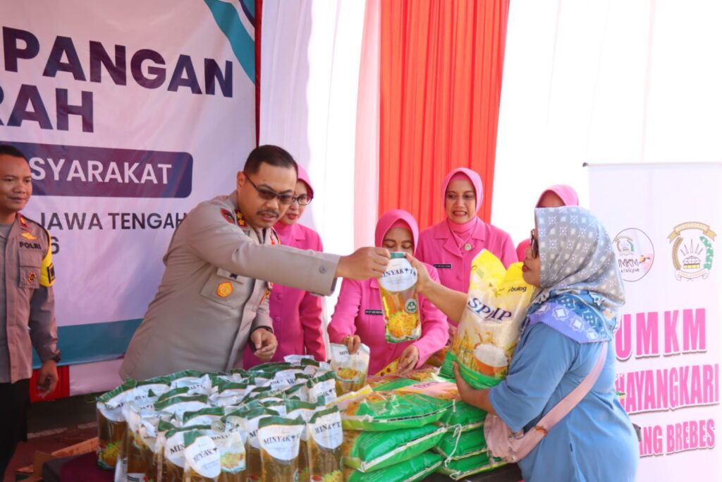 “Kami menyediakan Beras SPHP kemasan 5 kg seharga Rp55.000 dan Minyak kemasan 1 liter seharga Rp14.500, Alhamdulillah, seluruh stok terjual habis,” terang Kapolres Brebes.