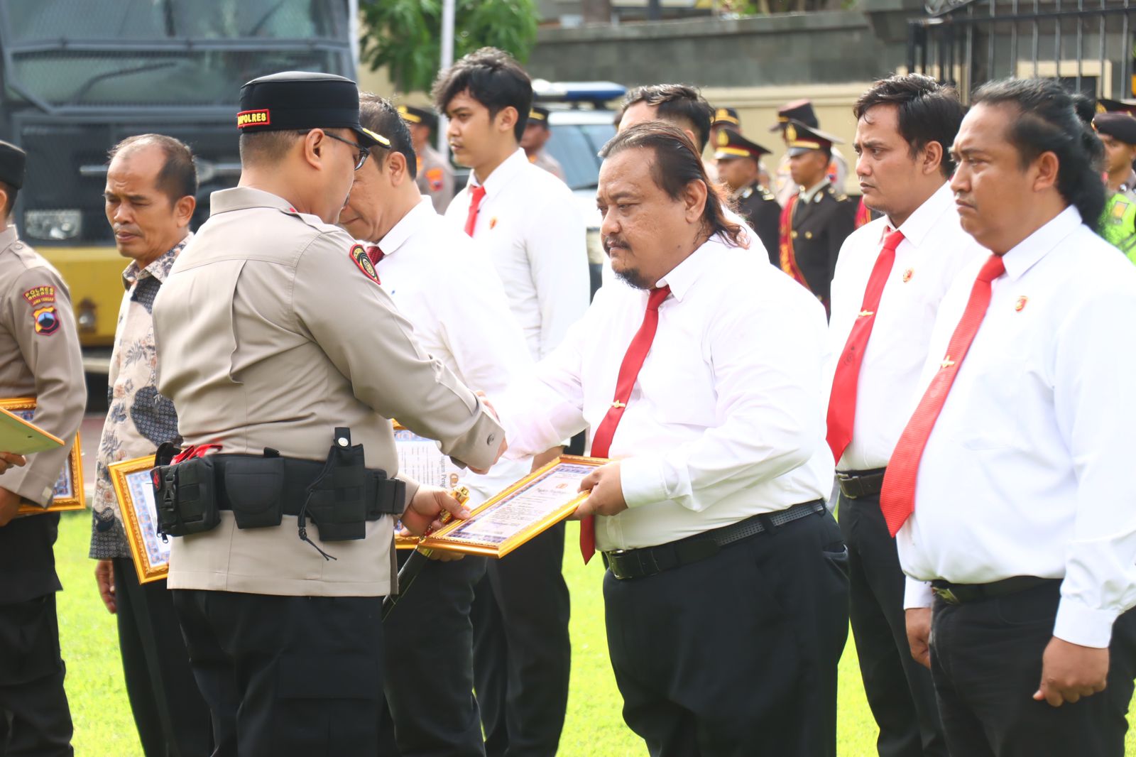 - Penghargaan dalam Prestasi Ungkap Kasus Tindak Pidana Pencurian Dengan Kekerasan diberikan kepada Aiptu Titok Ambar Pramnono bersama 10 personel lainya.